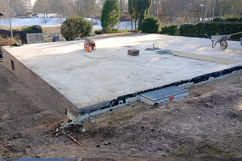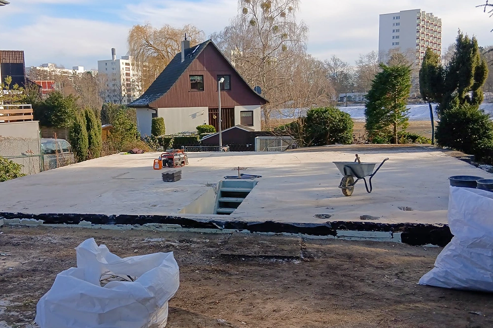 - Feuchtigkeit im Griff: Der Keller blieb während der gesamten Maßnahme geschützt – auch bei winterlichem Wetter.