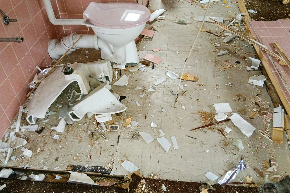 In Berlin-Steglitz haben wir ein zweigeschossiges Einfamilienhaus vollständig zurückgebaut – bis zur Bodenplatte. Der Rückbau wurde überwiegend händisch ausgeführt und beinhaltete die komplette Entsorgung aller Abfallfraktionen. Eine zentrale Vorgabe war, dass der Keller während der gesamten Arbeiten trocken bleibt. Zusätzlich war die Logistik stark eingeschränkt: Materialabtransport erfolgte ausschließlich mit Anhängern, da keine Container- oder LKW-Lösung möglich war.